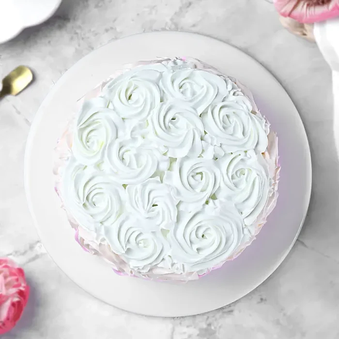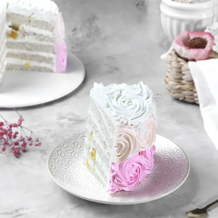 Delight in a treat that combines beauty and flavour in every slice Bursting with the tropical sweetness of pineapple, this cream cake is a delightful indulgence. Its elegant design features creamy rosettes beautifully adorned all over, creating a visually stunning masterpiece. The three-toned layers add a touch of sophistication and beauty. Perfect for celebrations or as a heartfelt gift, this cake is a charming way to spread joy and sweetness.